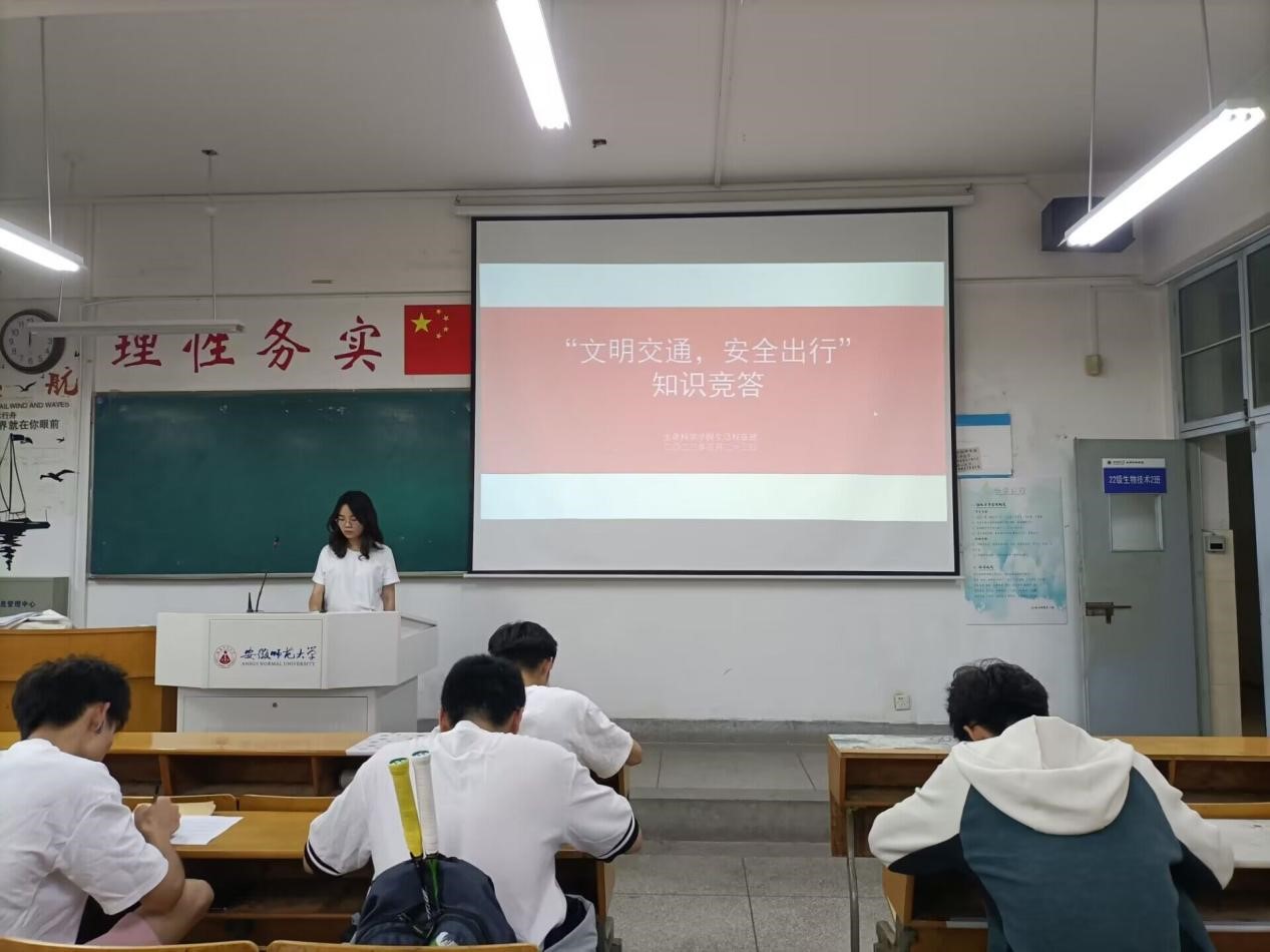 5月23日晚,生活部部长杨乐琪和副部长付新宇分别在生物科学及生物技术各班进行交通安全宣讲,向同学们科普一些基本的交通安全知识。全体同学态度积极、认真学习,并针对不懂的问题积极踊跃提问。