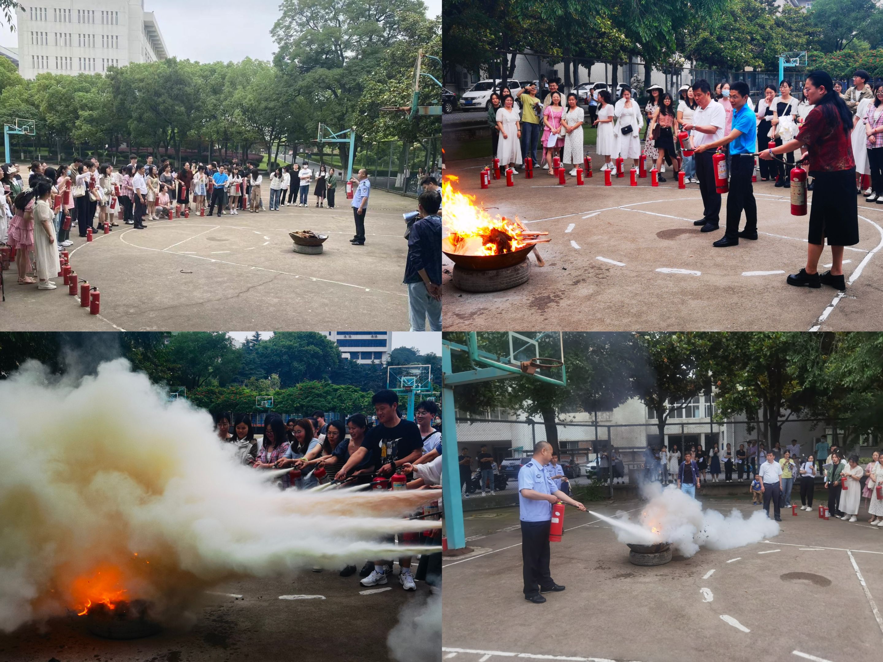 最后,学院师生参加了学校保卫处组织的消防安全实战演习。