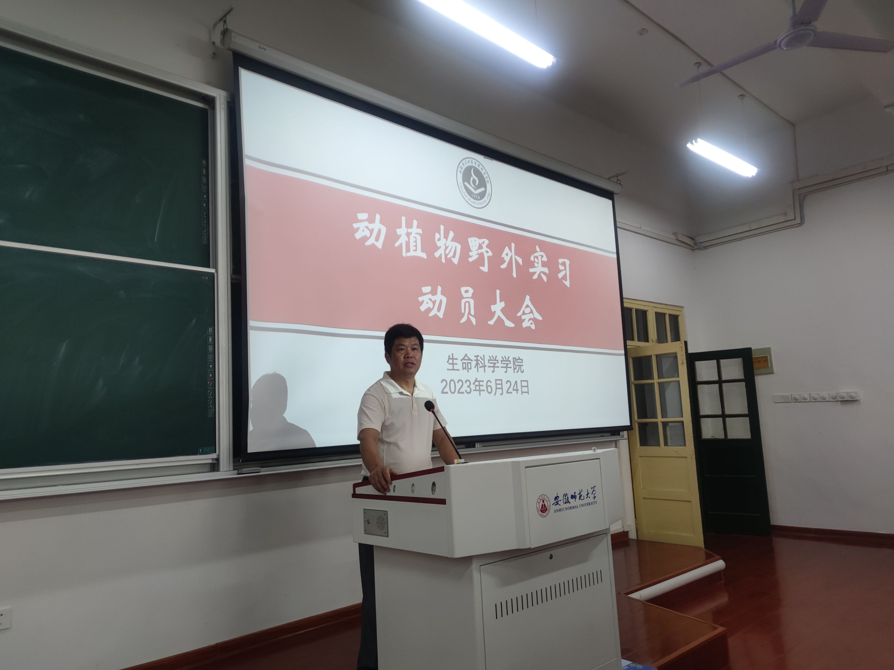 晏鹏介绍了野外实习整体安排,他指出,野外实习分动物组和植物组交替进行,要求同学们要在指导老师的指导下开展实习工作。