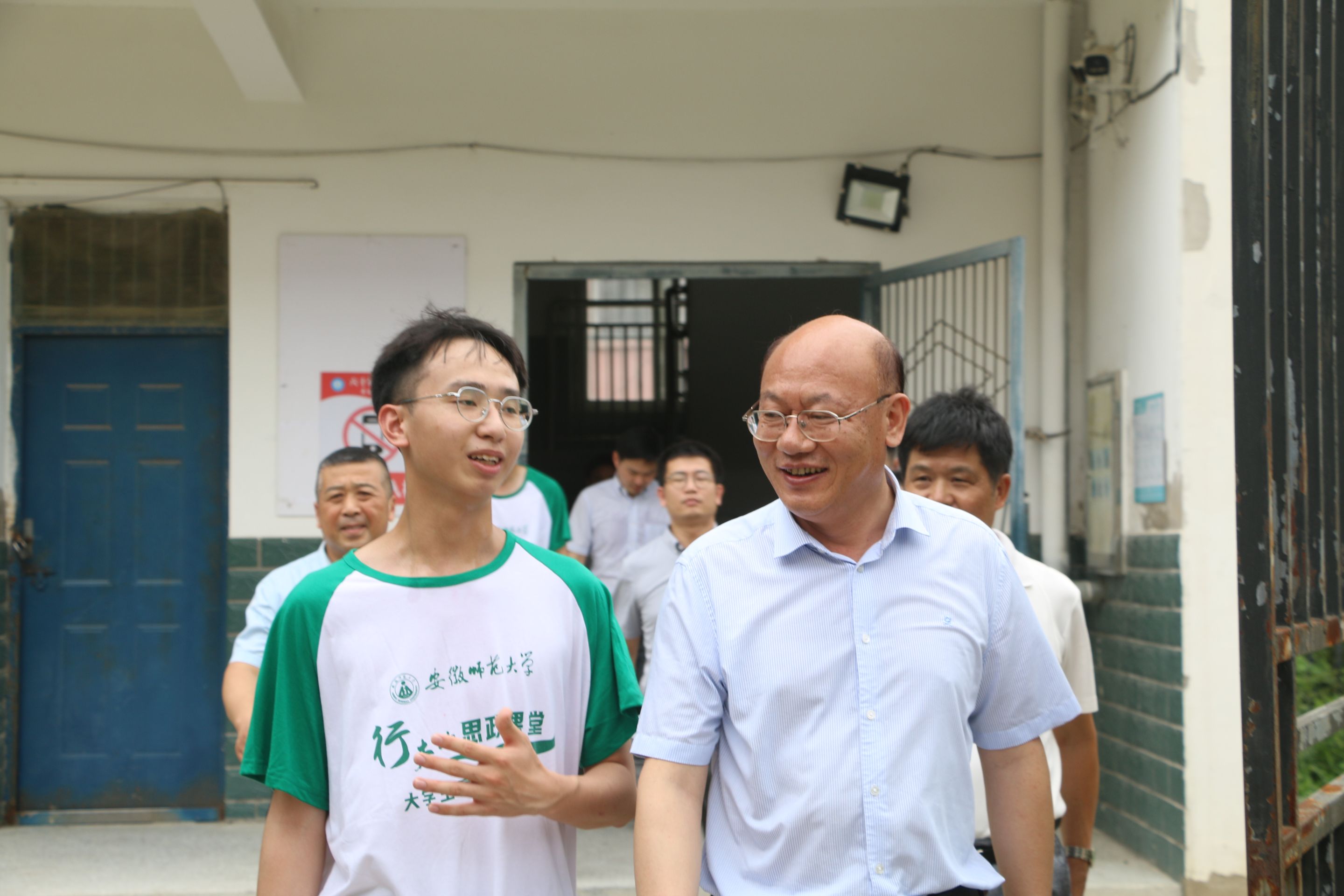 本网讯(生科院 潘诚)7月7日上午,校党委常委、校纪委书记、监察专员周新发,76net必赢线路检测中心党委书记蒋学波,校团委副书记陈骁,马克思主义学院副教授张鑫,生科院党委副书记汪倩倩一行赶赴阜阳市颍上县六十铺镇中心学校,对76net必赢线路检测中心赴阜阳颍上“红烛行动”爱心支教实践团队进行慰问。颍上县副县长岳岿、颍上县教育局局长许宗峰热情接待并安排六十铺镇党委书记杨平、颍上县教育局教研室主任郝家峰陪同慰问。