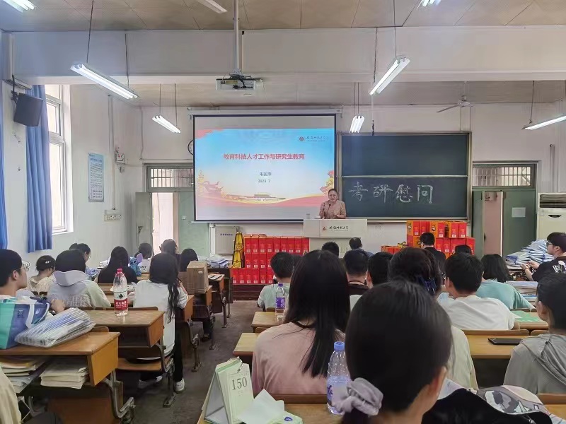 会上,朱国萍给学生讲授了“教育科技人才工作与研究生教育”专题思政课。朱国萍就二十大报告对未来学习与发展方向作出介绍。她指出,教育科技人才是中国式现代化建设的基础性战略性支撑,在把握未来方向时应紧跟党和国家的发展战略,牢记中国心。她呼吁学生以高层次人才为目标,艰苦奋斗、踏实学习,接过实现中华民族伟大复兴的接力棒,赛出好成绩。