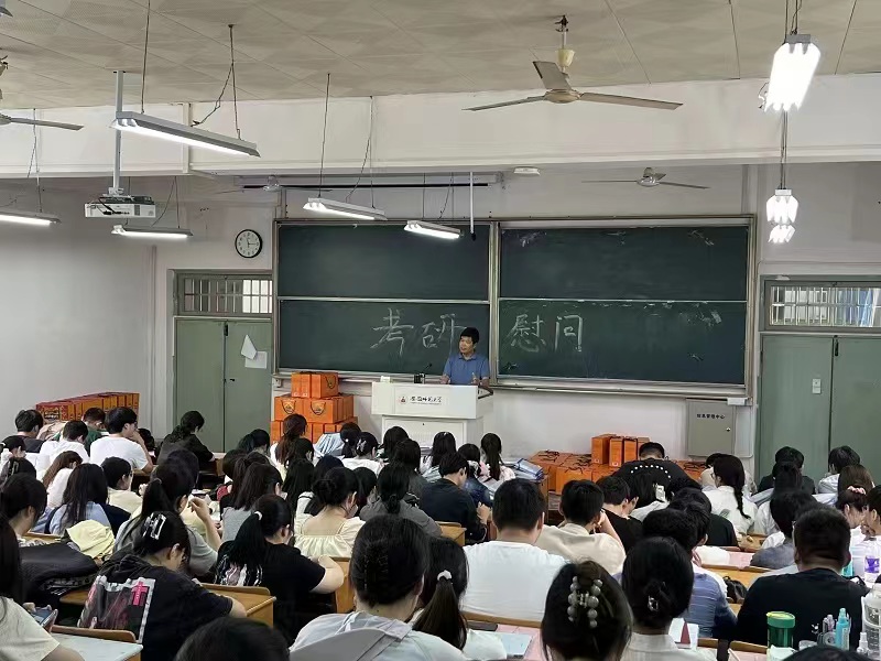 蒋学波代表学院向全体考研学生表达关怀与鼓励。他表示,考研是人生的升华、是家庭的期盼、是历史赋予的责任。他希望学生能结合自身情况制定科学合理的复习计划,在保证身心健康的情况下为国家、为社会贡献力量。