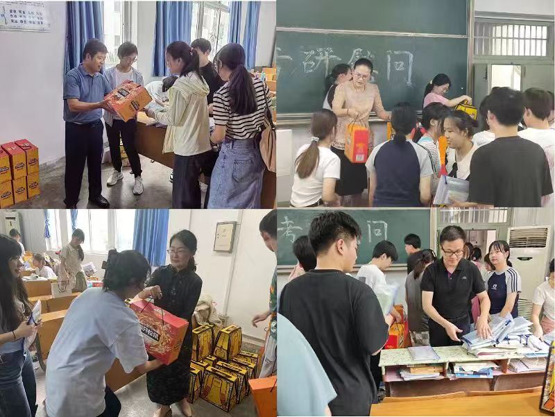活动的最后,学院领导与辅导员一同为考研学生分发文具袋和坚果礼包,学生纷纷向领导和老师们表示感谢。