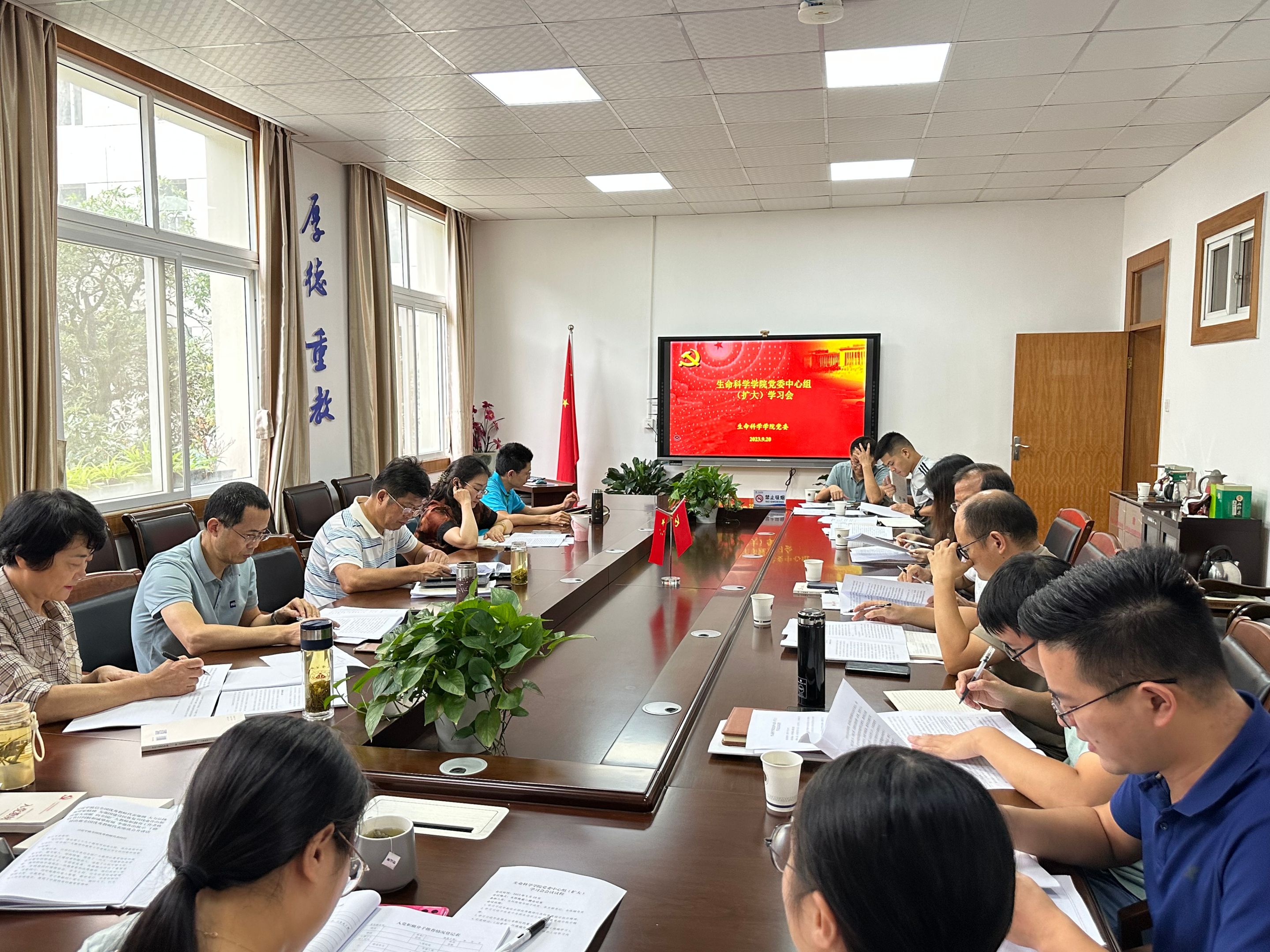9月20日下午,生科院召开党委理论学习中心组(扩大)学习会,学院领导班子成员、全体支部书记、辅导员参会。会议由学院党委书记蒋学波主持。