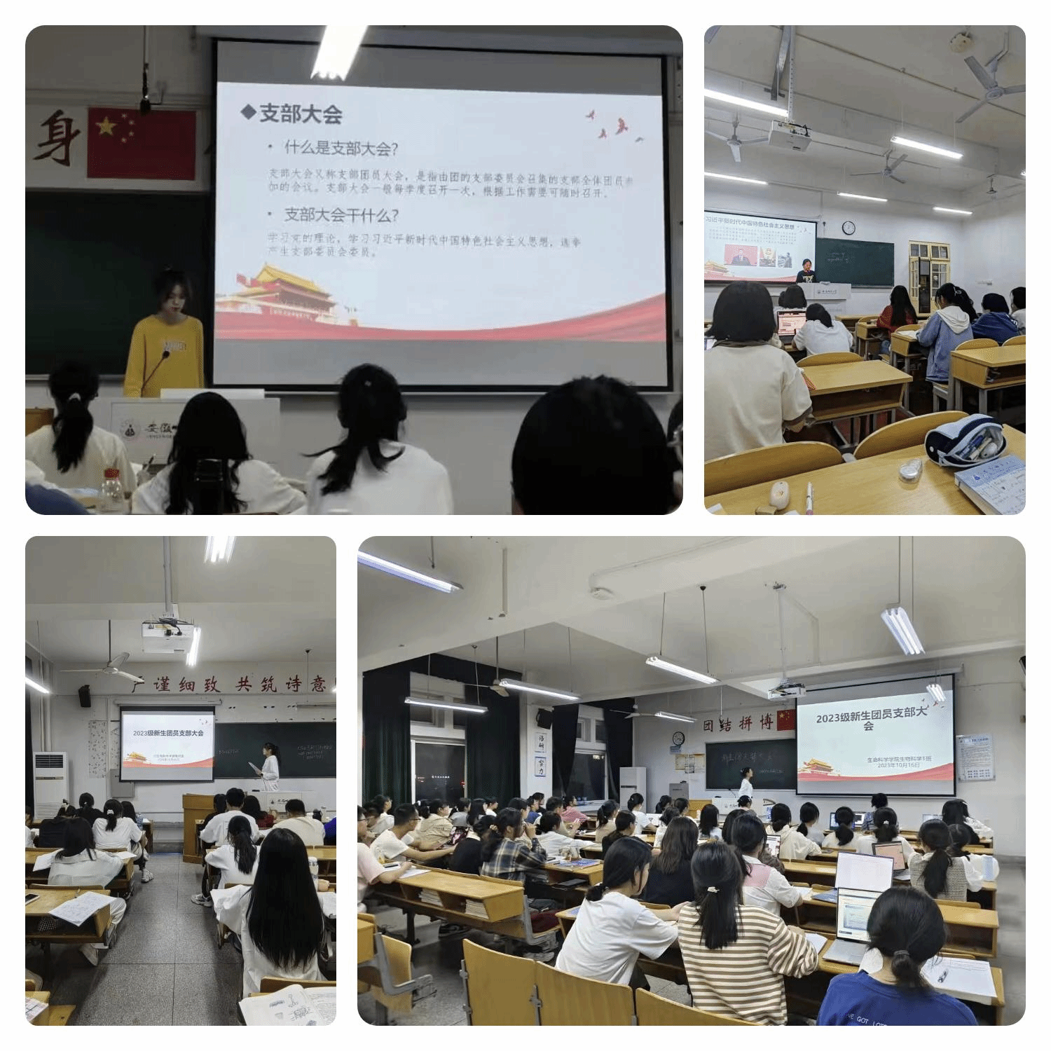 一次支部大会。各班团支部扎实推进新生团支部标准化建设,通过召开支部大会民主选举产生支部委员会委员和团小组组长。各团支部委员会明确各委员工作要求,对新学期工作特别是主题团课内容进行讨论和规划,确保各项工作顺利进展,确保不断提升团员青年的政治理论水平。