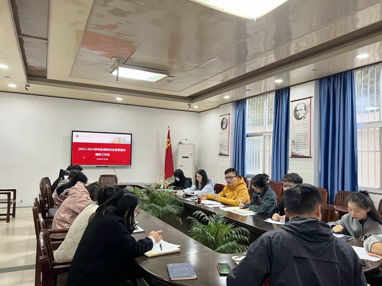 为推进时代新人铸魂育人工程,全面实施大学生护航行动计划,及时准确掌握研究生的思想动态和实际诉求,有针对性地解决研究生在思想、学习、生活、就业等方面存在的问题。我院于2023年11月10日组织召开“2023-2024学年秋季研究生思想情况调研工作会”。学院科研副院长王鹏,农业专业学位点负责人孙洋,研究生秘书胡艳,辅导员夏行权、蒋婷婷、魏泽坤,以及各个年级学生代表参与本次调研会。