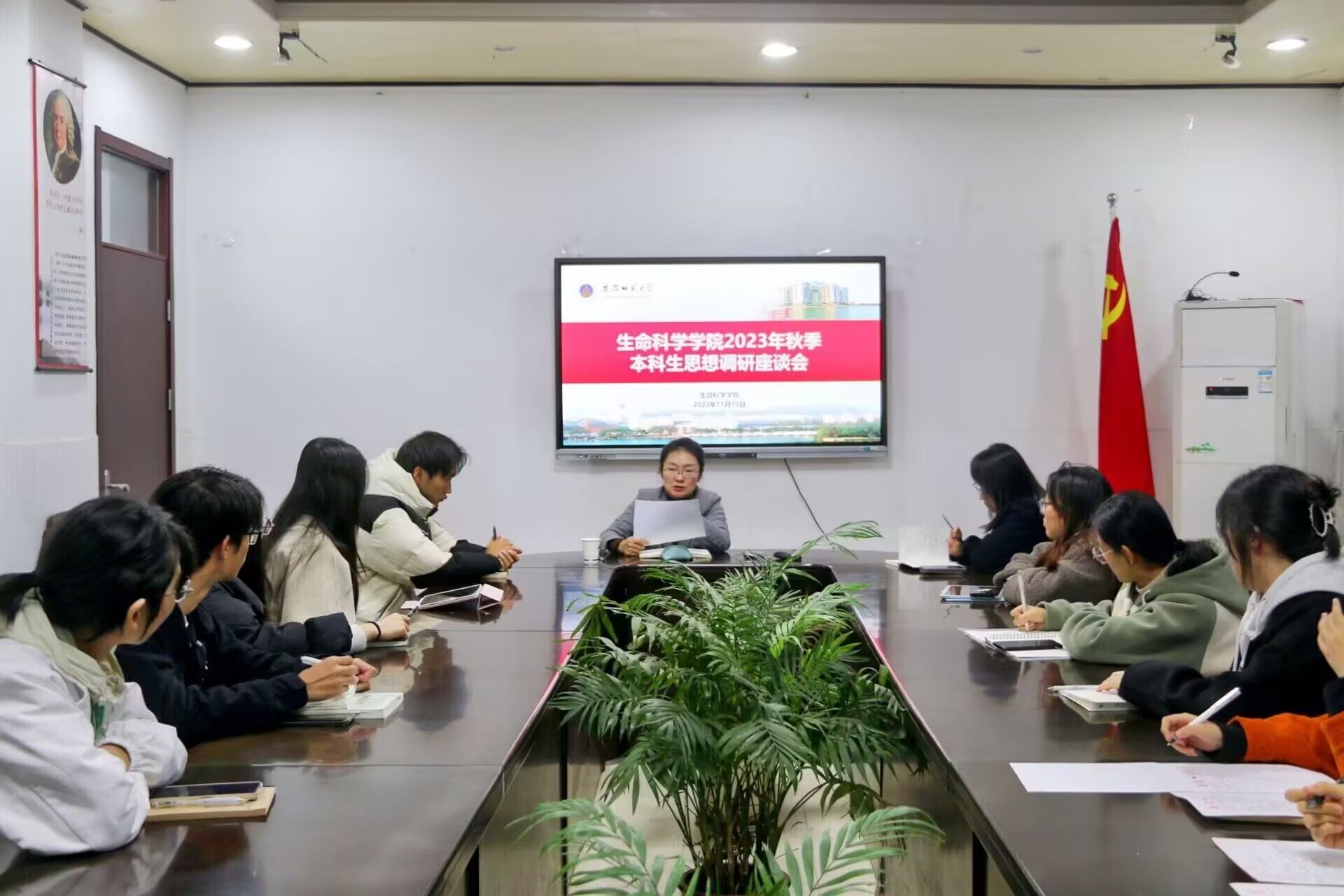 本网讯(生科院 王馨雅)为全面深入了解学生思想的动态变化,及时掌握学生在思想、学习和生活等方面存在的实际问题,进一步加强学生工作的针对性和有效性。11月15日下午,学院于生化楼后二楼会议室如期召开新学期学生思想情况调研座谈会。学院团委、学生会及各年级学生代表30余人参加会议,学院党委副书记汪倩倩、院团委书记刘梦婷出席会议。