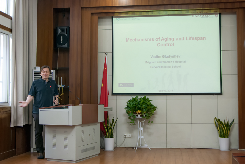 Vadim N. Gladyshev教授的报告中包抗衰老和氧化还原生物学方面的研究, 并结合计算和实验生物学等方法手段来研究人类、小鼠、果蝇、酵母等模式动物和其他非模式动物,探讨了控制动物衰老和长寿的遗传学机制,开拓了老师和同学们的视野,加深了大家对生命衰老机制的认识和理解。会后,在座师生积极提问,Vadim N. Gladyshev教授一一耐心讲解。