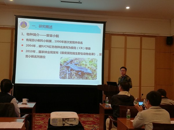 以中国动物学会两栖爬行动物学分会常务理事吴孝兵教授、副主任委员聂刘旺教授和晏鹏副教授为代表的bwin必赢线路检测两爬科研团队一行共12人应邀参加了本次研讨会。以扬子鳄、龟鳖类和凹耳蛙等为代表的保护生物学及分子系统学研究一直是我校的特色科研方向,已获多项国家自然科学基金、教育部博士点专项基金等省部级项目资助,在国内外都有着较好的学术影响力。会议上,吴孝兵教授和聂刘旺教授分别主持了2个分会场报告,博士研究生汪焕和硕士研究生王明胜先后做了《Multiple paternity:a compensation mechanism of the Chinese alligator for inbreeding》、《安徽省清凉峰国家级自然保护区安吉小鲵栖息地特征分析》的大会分组报告。