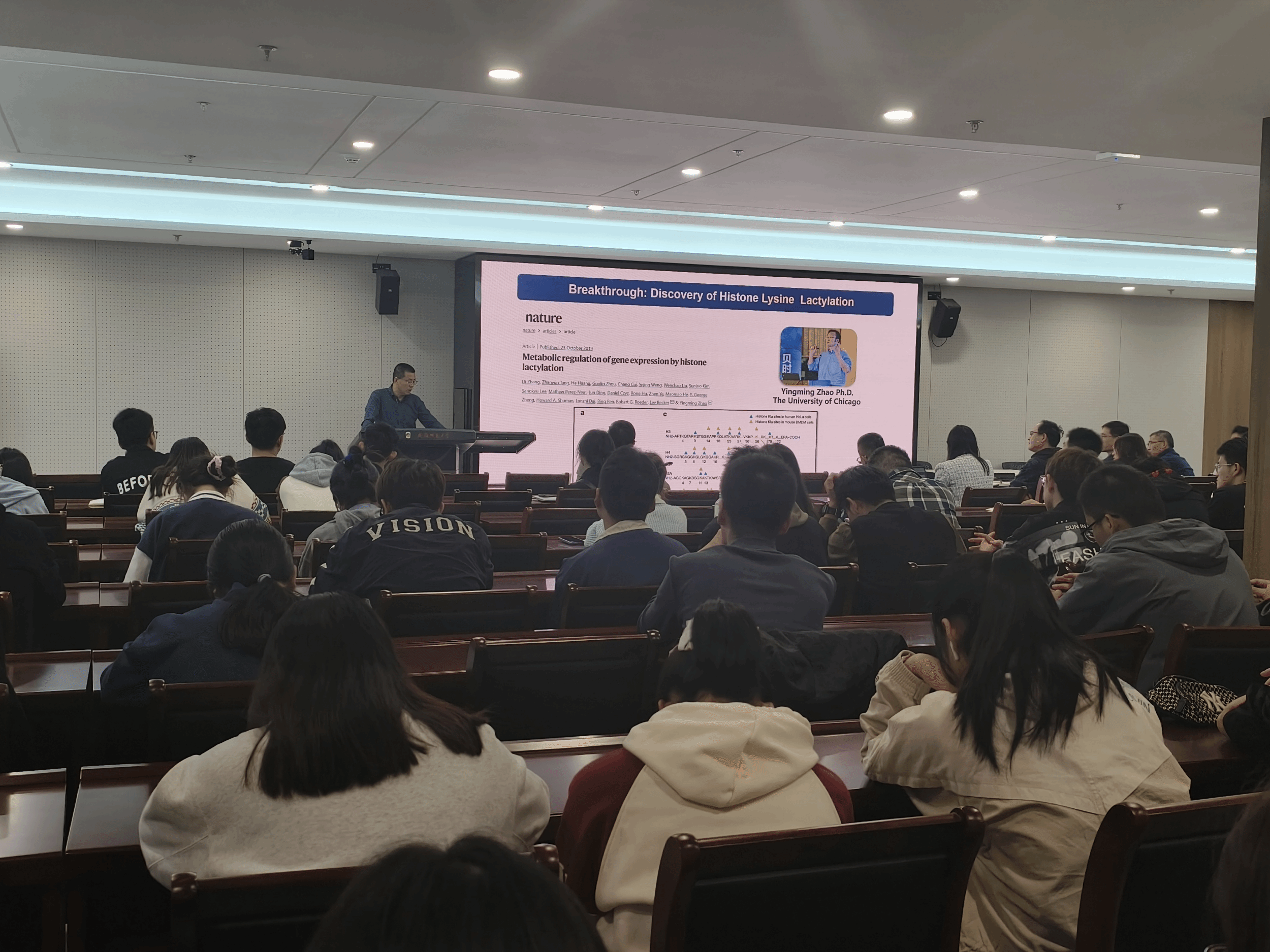 讲座中,程仲毅博士从三方面对蛋白质组学做了全方面且系统的介绍,分别是:蛋白质及蛋白质组学图谱、蛋白质修饰对于蛋白质功能的重要性、空间蛋白质组学。程仲毅博士紧跟科学前沿,积极引领科研方向,思路创新,其报告亦是幽默风趣,由浅入深,引人入胜,通过列举多个案例让我们了解到蛋白质组学图谱的应用及其重要性,为师生提供了很好的科研思路,收获良多。