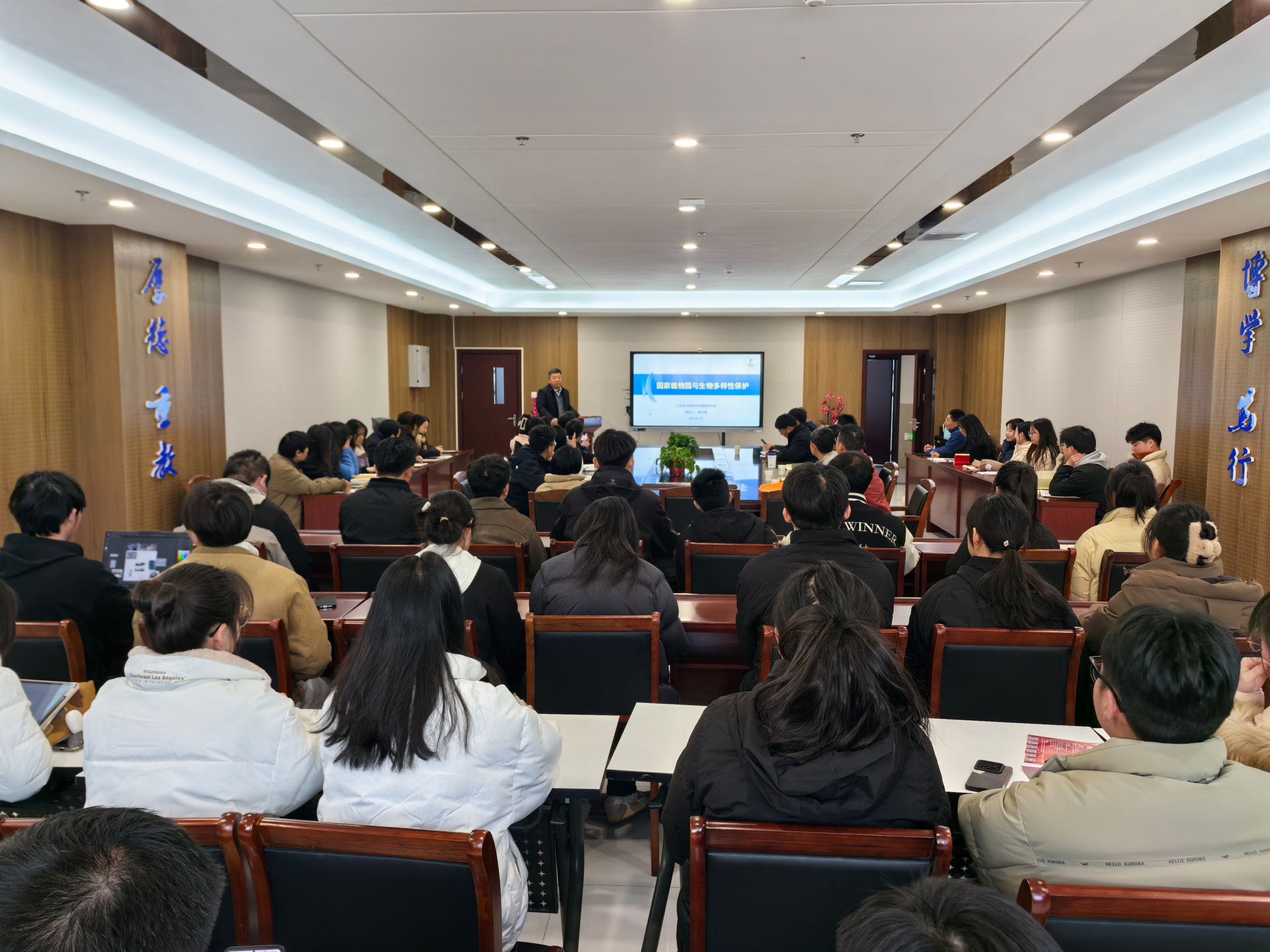 本网讯(生科院 陈越)2月24日,生科院邀请江苏省中国科学院植物研究所所长姚东瑞研究员作题为《国家植物园与生物多样性保护》的专题学术报告。报告会由邵剑文教授主持,60余位师生参加。
