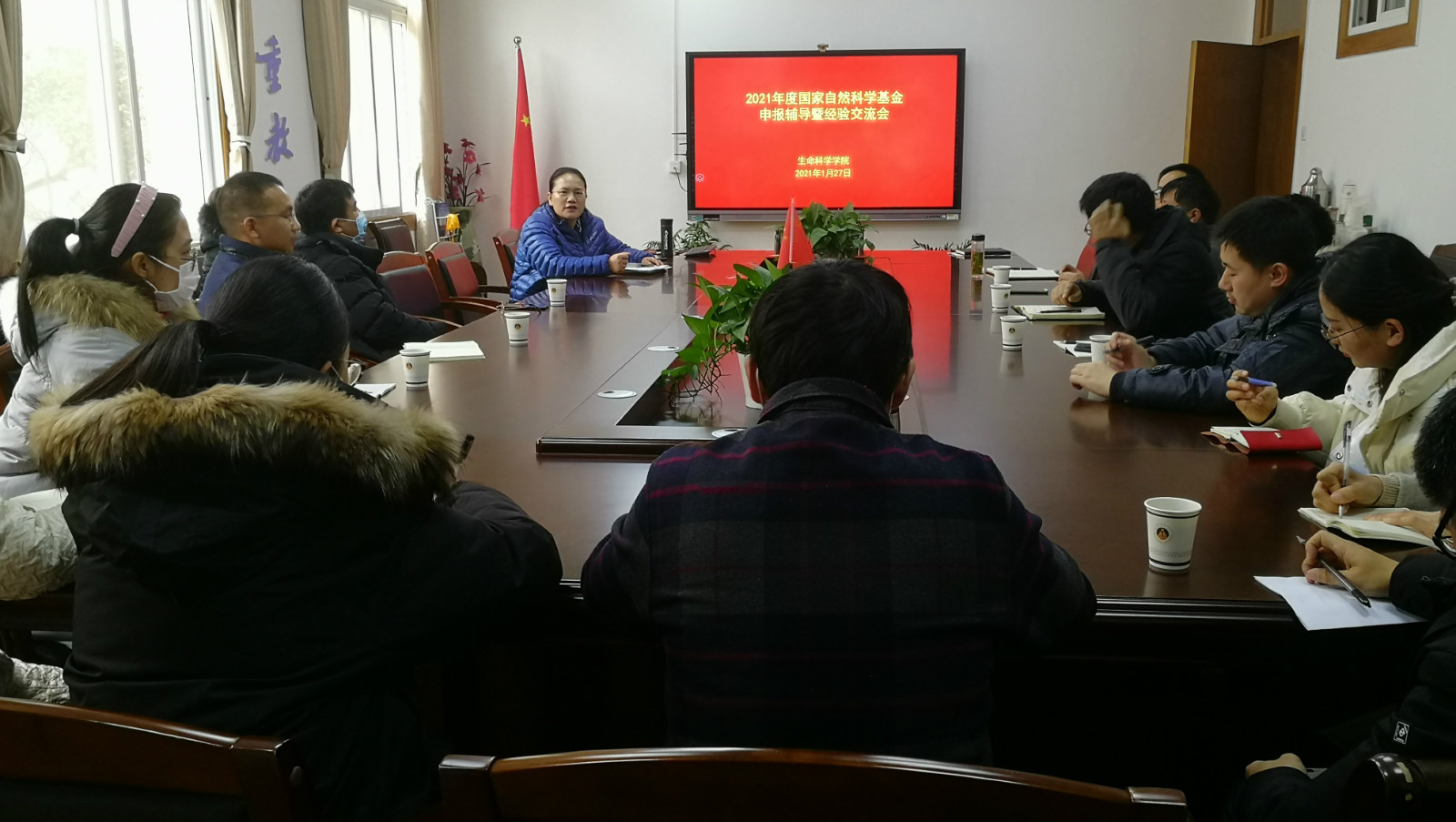 本网讯(76net必赢线路检测中心 张文君)为进一步做好2021年度国家自然科学基金课题的申报工作,1月27日下午,生科院在生化楼第一会议室召开了2021年度国家自然科学基金申报辅导暨申报经验交流会。会议邀请了我院潘红春教授和潘涛老师分享申报经验,二十余名申报教师参加会议,学院院长朱国萍主持交流会。