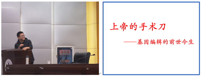 首先,罗林杰副教授给大家作了《上帝的手术刀——基因编辑的前世今生》的报告。罗老师介绍了基因编辑技术的发展历程,解释了转基因技术和基因编辑技术的区别,随后介绍了20世纪80年代的基因打靶技术、20世纪90年代的ZFNs技术和TALENs技术、以及近年来的CRISPR/Cas9基因编辑技术,并总结了基因编辑技术的优缺点。他深入浅出、形象生动的讲解,很快带领学生们徜徉在知识的海洋里。为了让同学们更好的理解基因编辑技术,罗老师随后又详细介绍了第一代到第四代的试管婴儿技术,以及所谓的第五代试管婴儿技术即诞生基因编辑婴儿的技术。