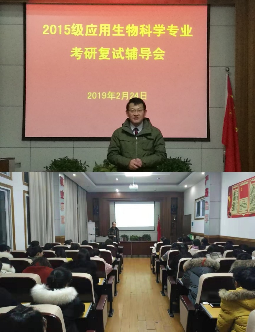 接着,陈冬生老师从三个方面对考研复试进行了辅导:第一,要高度重视复试,充分准备,积极获取信息。例如要关注A类和B类地区、理学和农学分数线的差异;对于需要调剂的同学,要查询省内外高校院所研招办的联系方式,方便直接电话咨询。第二,英语和专业加试过程中的一些注意事项。英语方面要写好英文的自我介绍并熟背,提前准备一些问题的英文答案,看一些英文的综述性文章或研究性文章,记住一些报考方向的专业术语。专业方面,除了复习专业知识,还要关注相关专业的最新进展,熟悉本科阶段所做实验的实验原理和步骤,熟悉毕业论文及所主持或参加的大学生创新项目的研究背景、目的、意义及实验设计,整理所聆听的学术报告。第三,面试过程要始终保持自信、有礼貌并面带微笑,沉着冷静应付出现的各种问题并切忌冷场。最后,他希望15级应用生物科学专业的考研同学都能如愿以偿,收获成功。参加培训会的同学们认真记录,并积极反馈交流,受益匪浅。