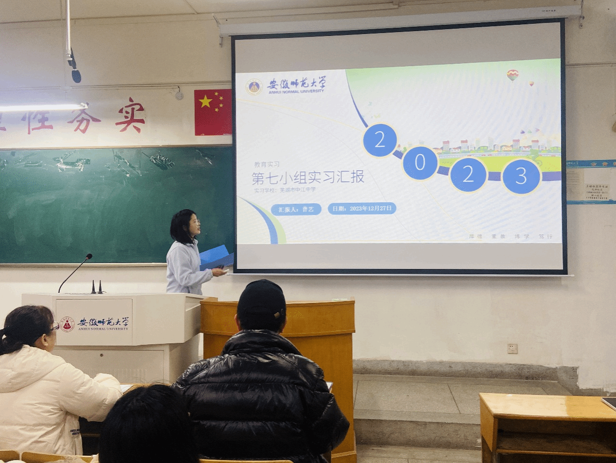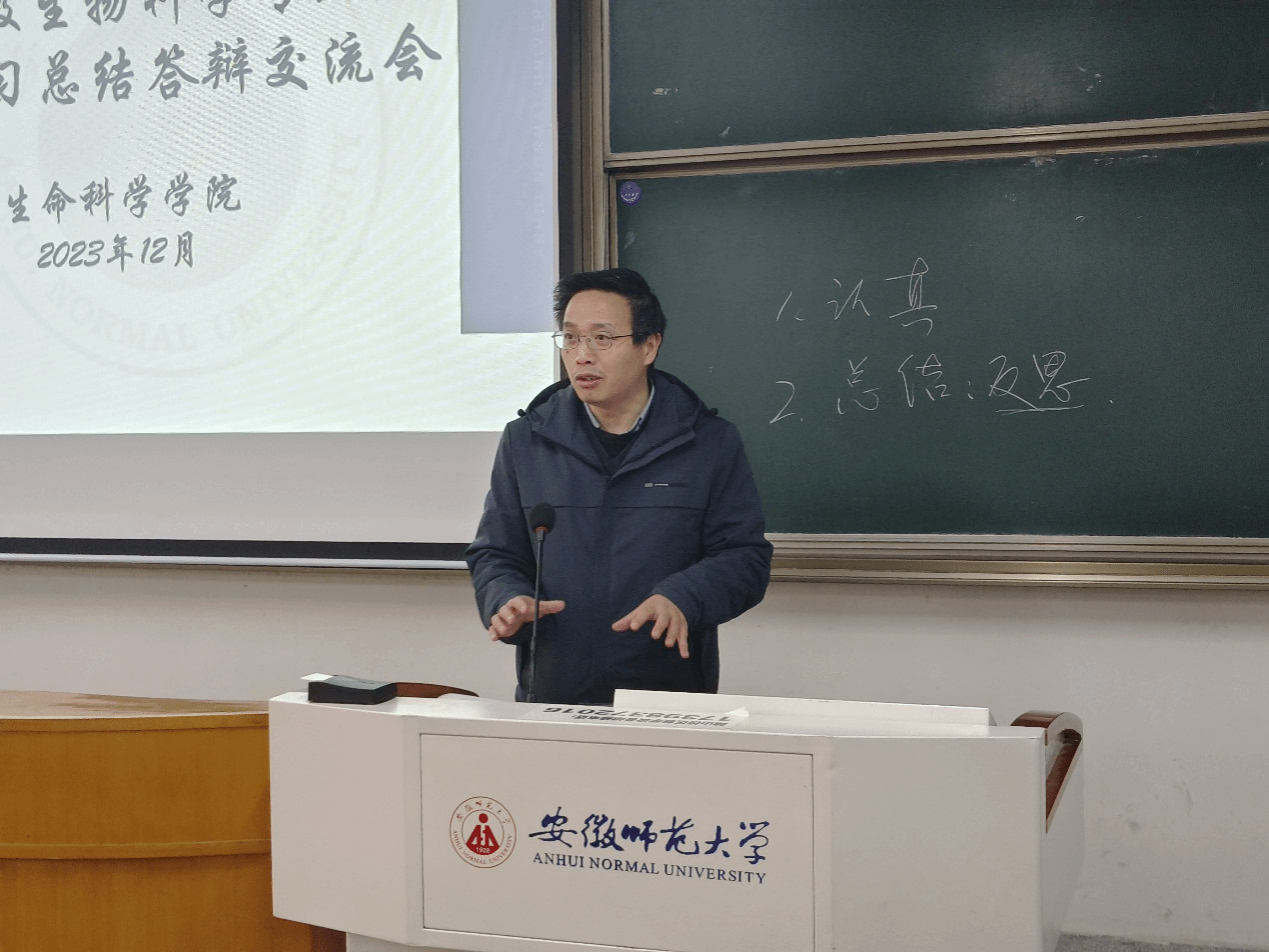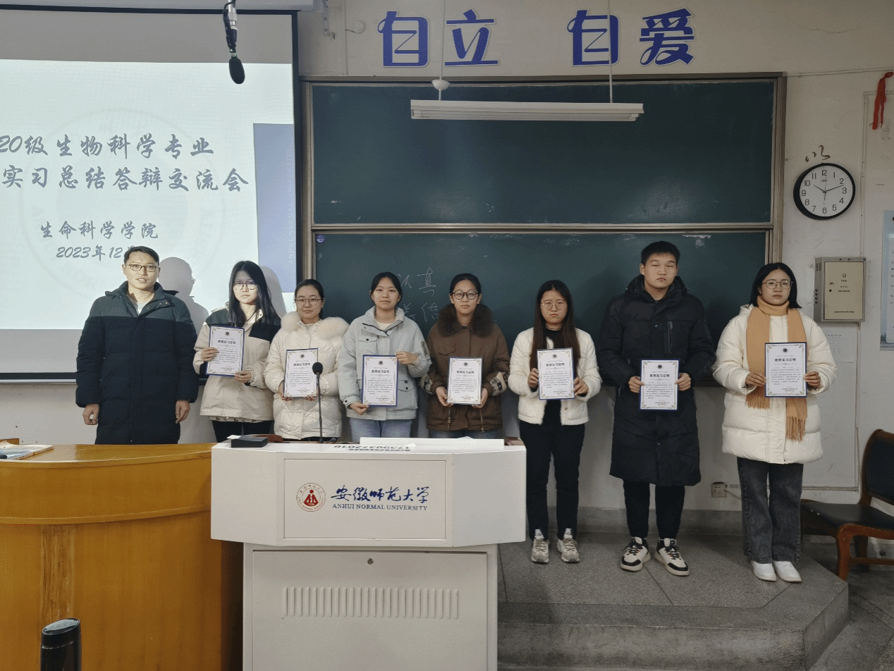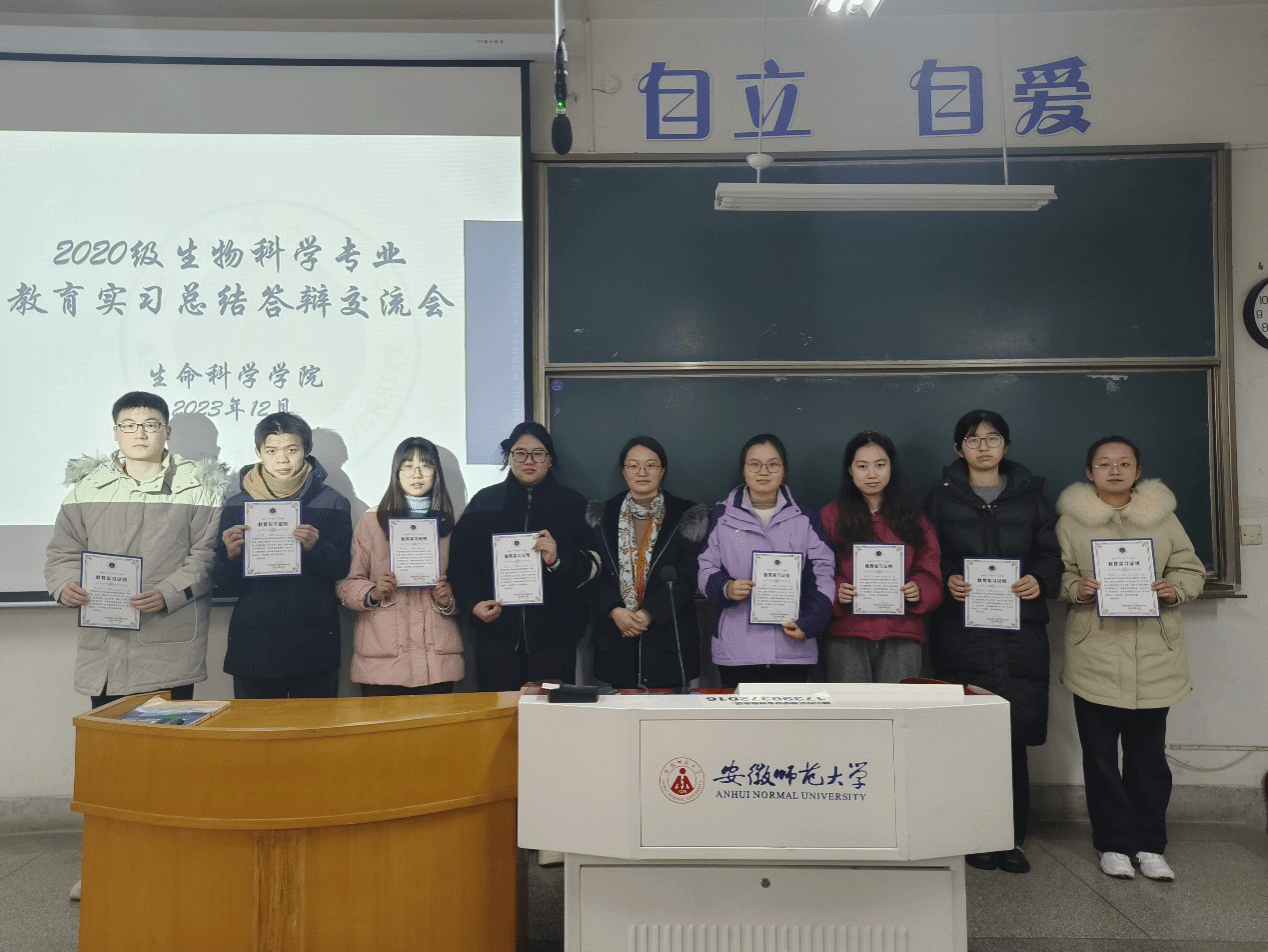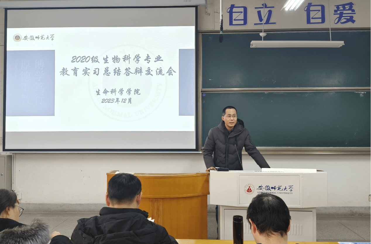 本网讯(生科院 潘诚)为进一步巩固生物科学(师范)专业教育实习成果,促进教育实习小组之间经验交流,引导师范生更清晰地认清教育工作未来发展方向, 2023年12月29日上午,76net必赢线路检测中心生物科学(师范)专业在赭山校区田楼8209和8210教室召开2020级师范生教育实习总结答辩交流会,扎实做好教育实习总结工作。会议由李隆青、刘梦云同学主持,生科院副院长陈冬生、生物科学专业负责人杨安娜、生物科学卓越班负责人姜斌、实习指导教师出席指导实习答辩工作。