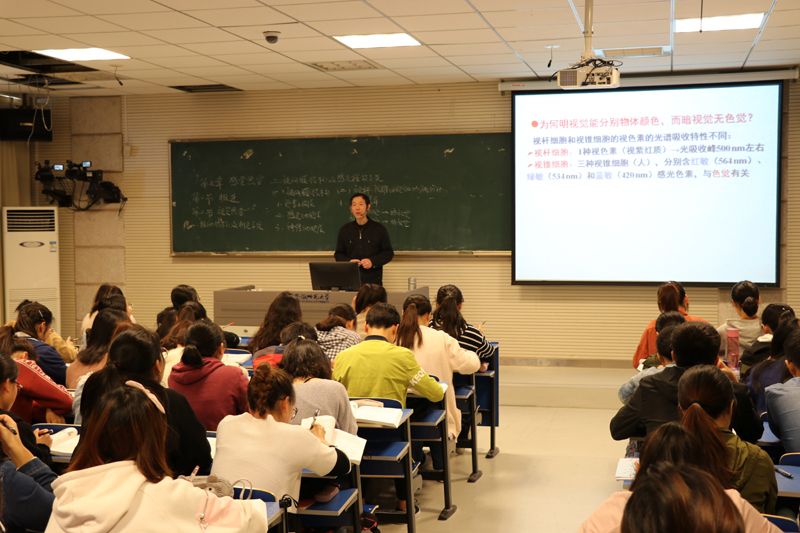 (生科院 项贤领)4月10日上午9点,本学期校本科教学示范观摩课第二讲在赭山校区田家炳楼8607录播教室举行。全国模范教师、76net必赢线路检测中心华田苗教授就《动物生理学》中的“视网膜的结构及感光换能系统”进行了示范教学。参加观摩课的有校院两级本科教学督导团的吴华强、汪鸣和张小平等老师,以及教务处黄亮副处长、学院蒋学波书记及部分中青年教师等20余人。