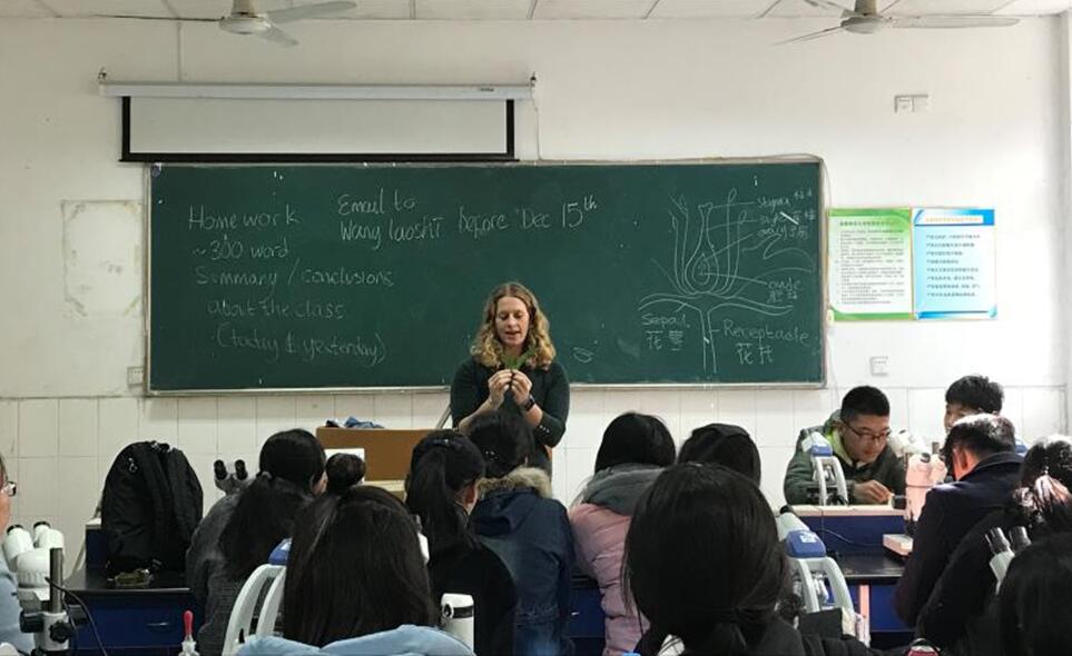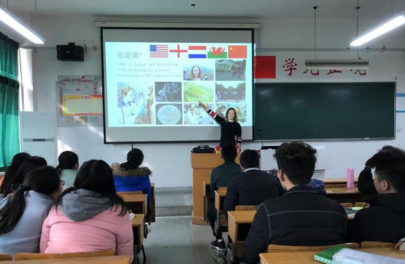 (生科院 许梦雅)11月24日,亚伯大学Sara老师应邀来我校授课。上午十点,Sara老师在田家炳楼8309与同学们见面。一开场,老师先用中文进行了一段幽默风趣的自我介绍,她流利的中文令同学们惊喜不已。Sara老师先为我们介绍了亚伯大学的优美景色、舒适的宿舍、各个学院的分布情况,还十分详细地介绍了同学们在亚伯大学所归属的IBERS学院(生态、环境和农学院)情况。紧接着,老师开始了她的课程——Ecology,她从什么是生态学介绍到生物之间的相互作用……下午两点,同学们接着上午的话题,展开了对种群和群落定义的讨论。并由老师介绍了一些地衣的特征,为明天的课外实践打下基础。