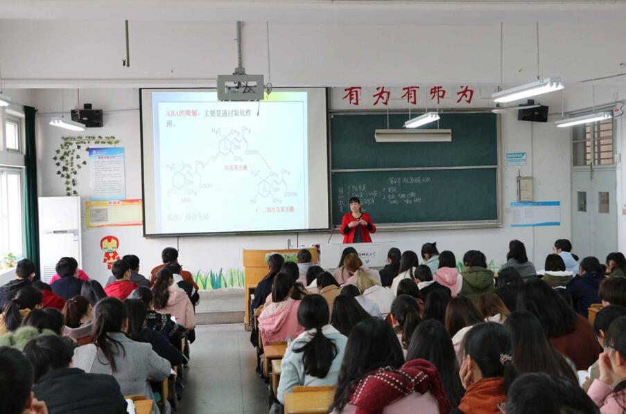 《植物生理学》是生物科学、园艺、生物技术、生态学等专业的重要基础课程。本次授课内容“脱落酸(ABA)”是该课程植物激素中重要的一种生长调节物质。张晓平老师首先从已经讲解的前四类激素的发现导入,并以“苹果为什么会落地”的故事引入脱落酸的发现。在简要介绍脱落酸的运输、代谢等基础知识后,张晓平老师结合信号转导机理,通过精美的图片和巧妙的教学设计,紧密联系实际生产,层层递进,重点讲解脱落酸的作用与应用。