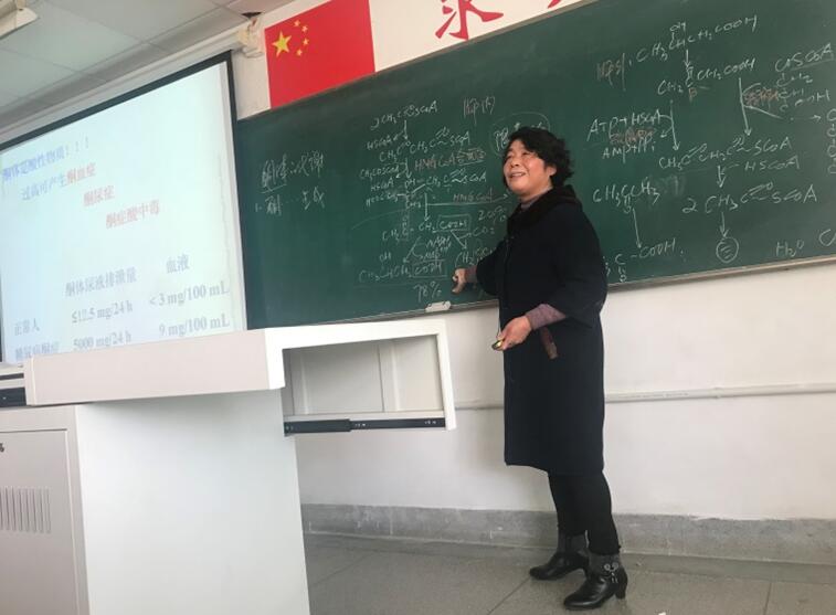 张老师以简短、精炼的语言概括了上节课的内容,并向学生提问,在问答环节中进一步加深学生对已学代谢途径的理解,巩固对学生对已学知识点的记忆。随后,张老师用一张地震图片引入酮体合成与分解,勾起大家的学习兴趣,也形象地显示了酮体在生物体中的作用。为了让学生更直观地认识酮体合成与分解过程,张老师将每一步反应清楚地书写在黑板上,并重点介绍了酮体的组成成分以及催化反应的酶及其发生部位,让学生清楚地理解了酮体不是主要能源物质以及酮体在肝脏产生而在肝脏外利用的原因。此外,张老师还准备了一些与此代谢途径相关的最新文献,也让学生了解到最新的科研进展,并加深了学生对酮体合成与分解代谢的理解;同时,也让学生了解到,生物体内的任何一个代谢过程的异常,都有可能造成致命的疾病。整个教学过程中,张老师以亲切的教态,娓娓叙说着酮体的前世今生,既立足于课本知识,又拓展了学生理解的深度和广度。