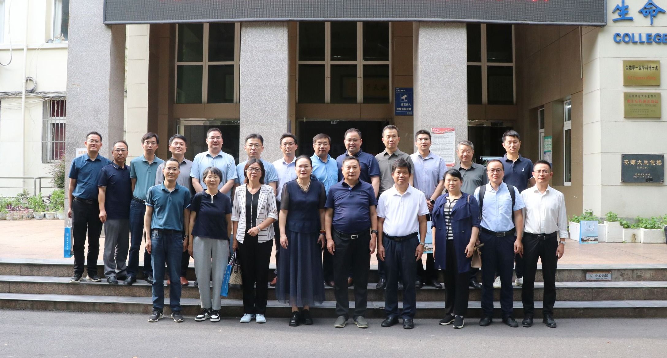 最后,安徽省大学生生命科学竞赛专家委员会主任、合肥师范学院原副校长李进华做总结性讲话。会后,参会人员在生化楼前合影留念。