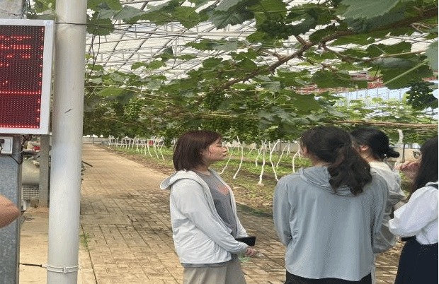 随后,同学们在负责人的带领下来到工作间近距离观察产品的生产包装,在这个过程中,负责人介绍了关于烘干和冻干的相关知识和区别,以及大型机器包装和人工包装的不同适用条件,其次前往大棚亲身接触葡萄藤,火龙果,柚子的树苗,负责人向同学们介绍这些水果的种植技术,生长习性以及营养价值等相关知识。