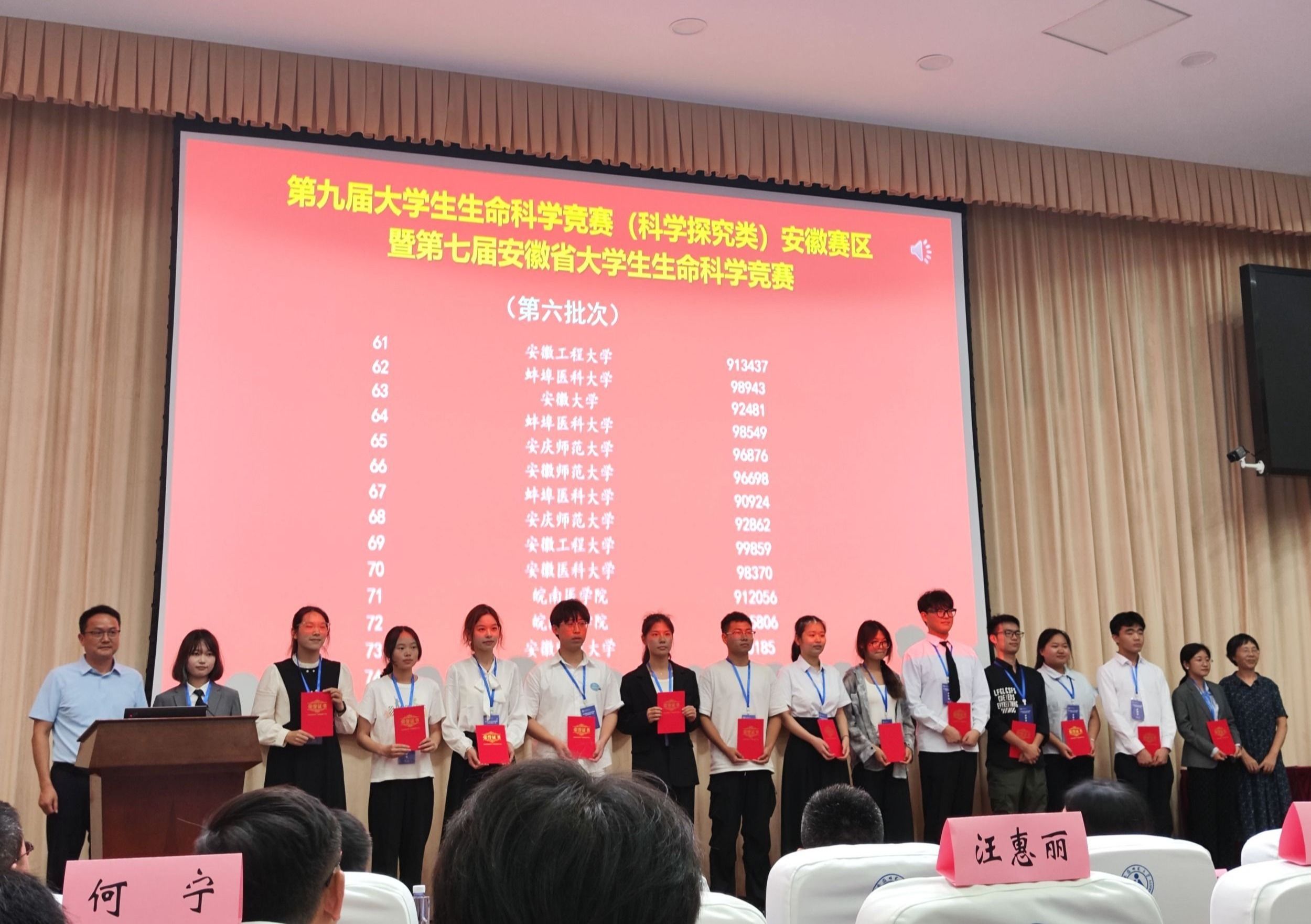 闭幕式上,李进华主任宣读了决赛获得省一等奖的参赛队伍,并进行了颁奖。竞赛组委会对出色组织第七届安徽省大学生生命科学竞赛的6所高校颁发了优秀组织奖。省赛组委会对本届大赛评出的一等奖74项、二等奖148项和三等奖186项进行网上公示,前48支优秀团队将代表安徽省参加7月下旬举行的第九届全国大学生生命科学竞赛(科学探究类)决赛。