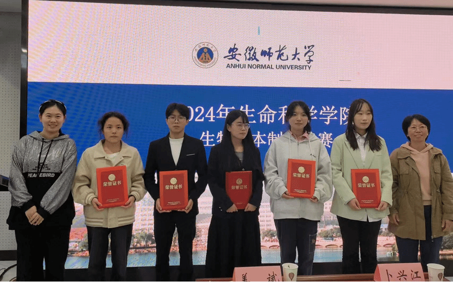 经过紧张的评选和统计,最终《安徽省翼手且食性与头骨和翼的关系》(动物组)、《薄荷香浓醉》(植物组)、《鸡因羽蕴-揭示幼鸡羽色伴性遗传的密码》(动物组)、《让每一次相遇成为守护,而非终结》(创意组)、《践行“七个强省”计划,展“皖美奋进”之姿》(创意组)共5件作品被推选参加安徽省生物标本制作大赛。