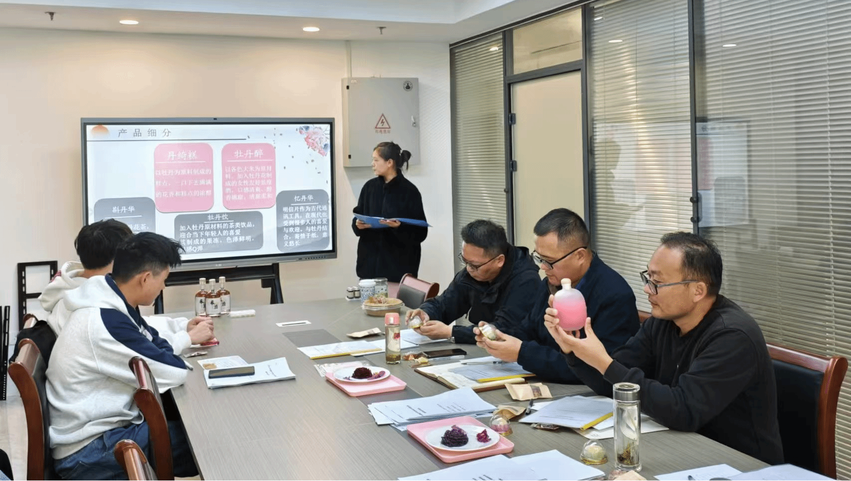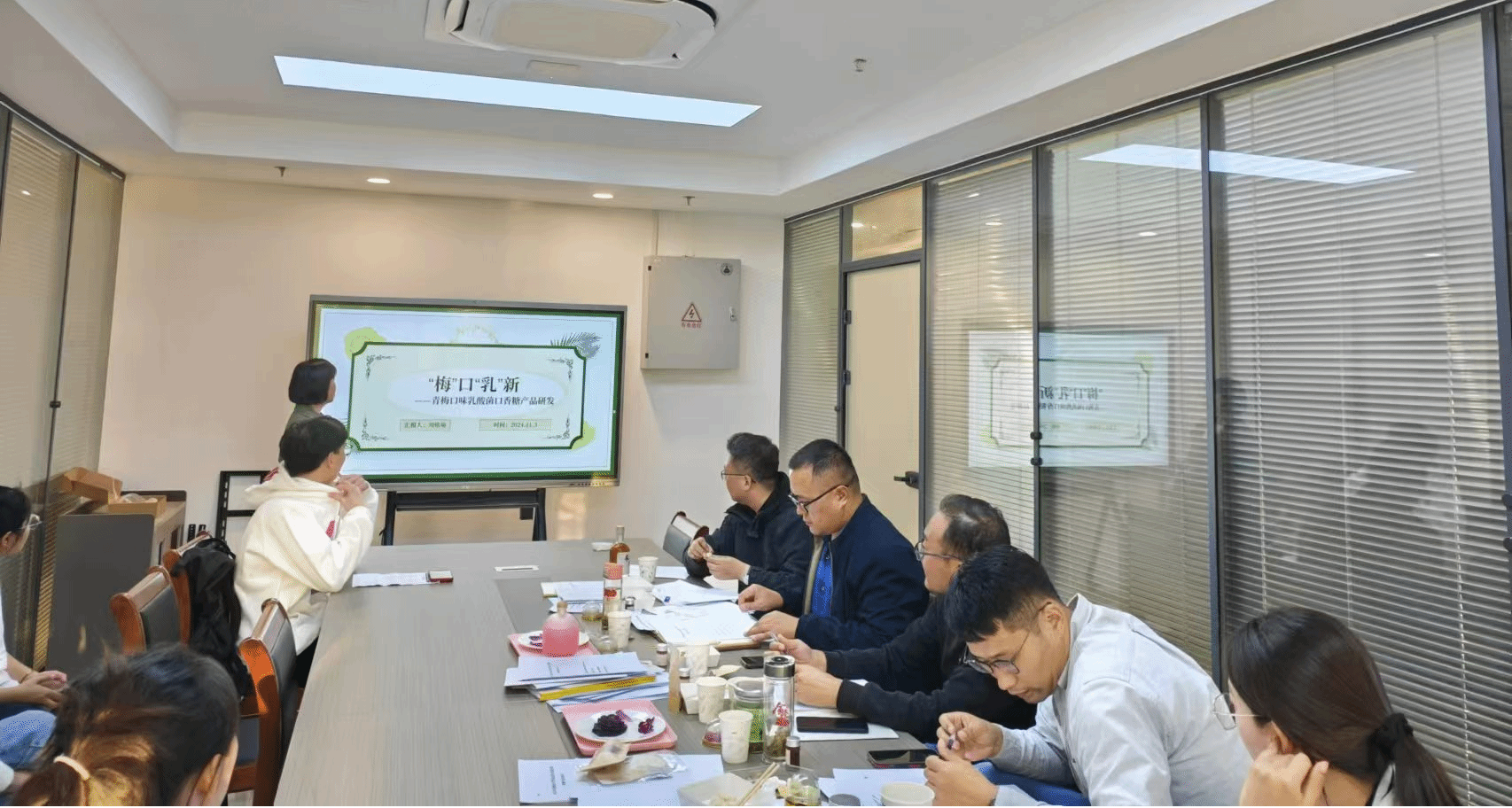 随后,各支参赛队伍按照大赛赛程要求,分别从作品立意、创作过程、创新点以及实物展示等方面展开作品展示和汇报答辩,回答评委老师的质疑和问题。各支参赛队伍以团队形式呈现了各自研发的新产品和设计的创意作品,包括猪肉纸、蛋白棒、牡丹糕、石头饼、香菜、米酒、饮料和口香糖等特色食品。各位评委本着公平公正的原则,对参赛作品进行了严格把关,详细地了解同学们的作品定位和创意方向,并就如何进一步精心打磨参赛作品、挖掘作品内涵、突出创新点、完善包装设计和选择合适主题等方面提出了许多建设性的指导意见。