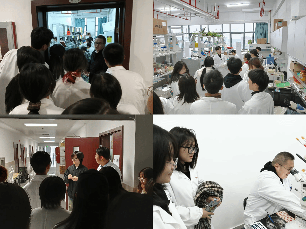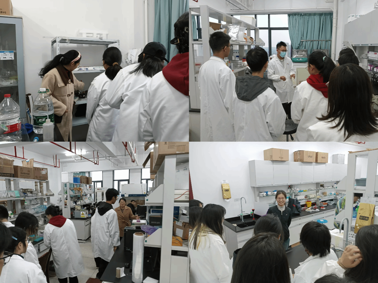 姜斌首先为同学们介绍了我院的“本科-硕士-博士-博士后”多层次培养体系,并详细介绍了我院的硕士学位授权点、科研平台和科研团队的基本情况。之后,带领同学们依次参观了清源楼7楼至11楼的科研实验室。参观过程中,学院本科生导师潘涛、邵剑文、阚显照、杨璐、刘洪明、汪昌保、储谟立、谭小娟和聂瑞娥等为同学们详细介绍了各自实验室的仪器设备以及团队开展课题研究的情况,并鼓励同学们打好专业基础、积极争取到实验室开展科研训练。同学们对实验动物、植物和各种标本都充满了兴趣。期间,老师们也针对同学们的提问耐心的一一回答。