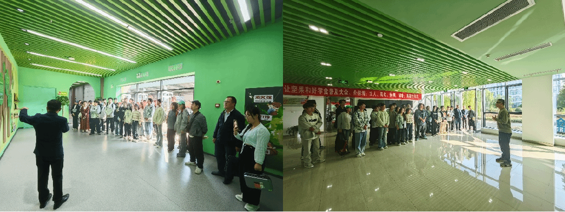 在三只松鼠无为工厂,同学们近距离感受了现代化食品企业生产现状,亲眼目睹了坚果产品从原料筛选到成品包装的全过程。现代化的智慧工厂、自动化的生产线、精准的质量控制中心、繁忙的物流体系等给同学们留下了深刻印象。