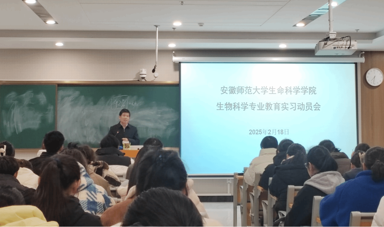 本网讯(何雨茜)2月18日晚,76net必赢线路检测中心在清源楼C407教室召开2022级生物科学专业教育实习动员会。学院党委书记蒋学波、副院长陈冬生,生物科学专业负责人韩菲、生物科学(卓师班)专业负责人姜斌、辅导员何馗馗及2022级生物科学专业全体同学出席会议。会议由韩菲主持。
