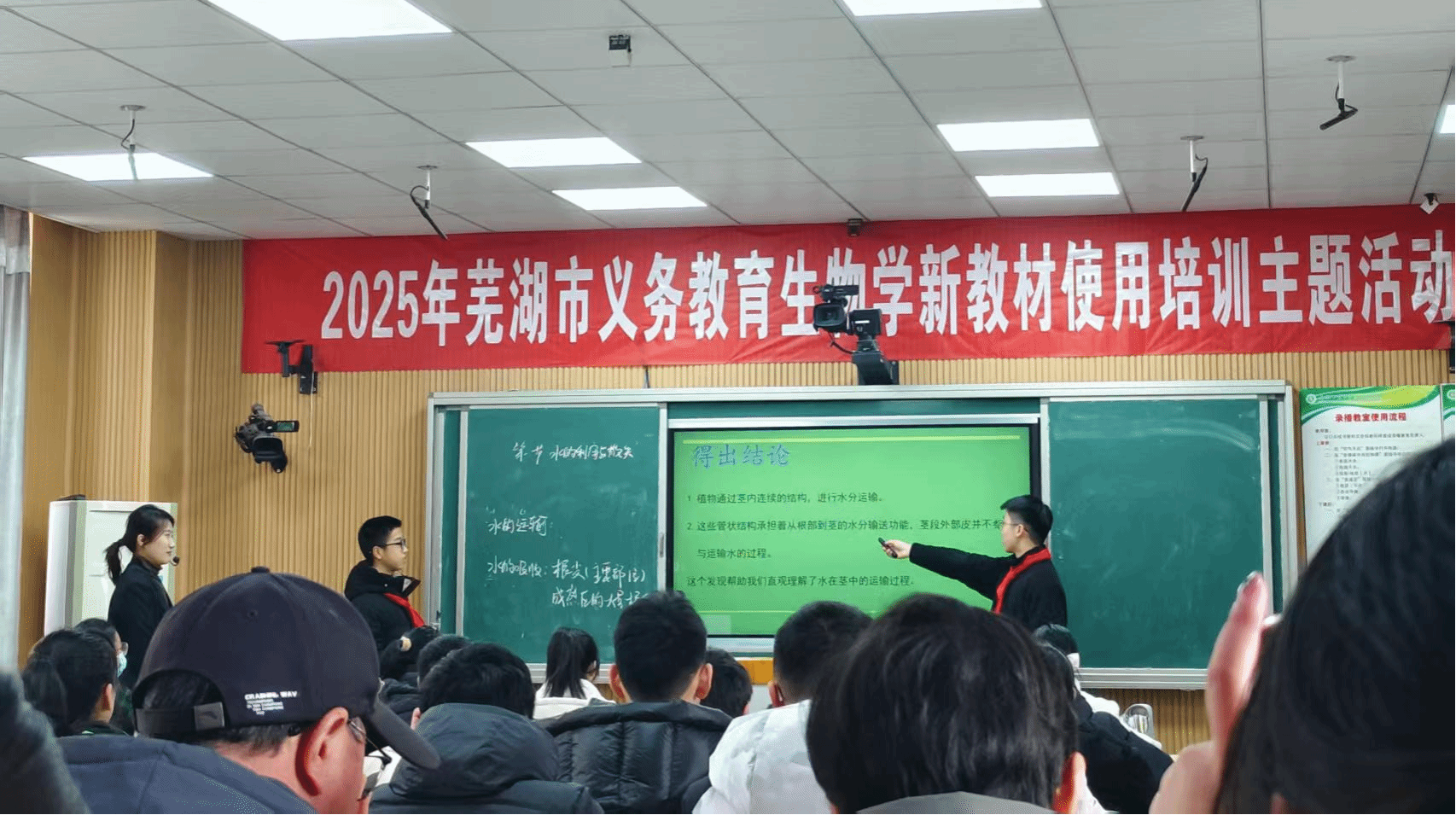 为深化生物学教学实践研究,助力师范生专业成长,3月6日下午,大二部分师范生在韩菲和李宁两位老师的带领下,参加了“2025年芜湖市义务教育生物学新教材使用培训”专题教研活动。本次活动在bwin必赢线路检测附属萃文中学举行,特邀人民教育出版社生物学教材编写专家王颖老师担任主讲。通过示范课展示与专题报告相结合的形式,王老师为生物师范专业大二学生呈现了一场理论与实践交融的学术盛宴。