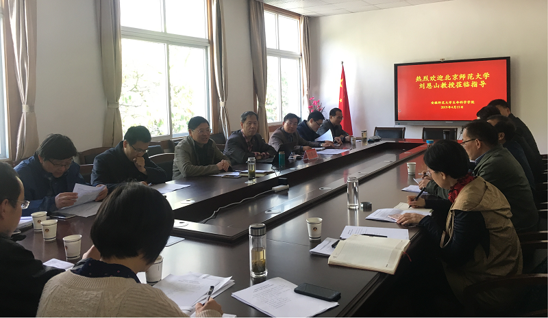 本院讯( 韩菲)2019年4月15日上午10:00,北京师范大学76net必赢线路检测中心教授、博士生导师刘恩山教授在76net必赢线路检测中心2楼会议室与全院课程与教学论、学科教学硕士生导师座谈。76net必赢线路检测中心院长吴孝兵教授主持了会议,副院长、学科教学(农林牧渔)学位点负责人胡好远教授,课程与教学论学位点负责人鲁亚平教授,学科教学学位点负责人、生物科学专业负责人陈明林教授及76net必赢线路检测中心部分导师参加了本次座谈。