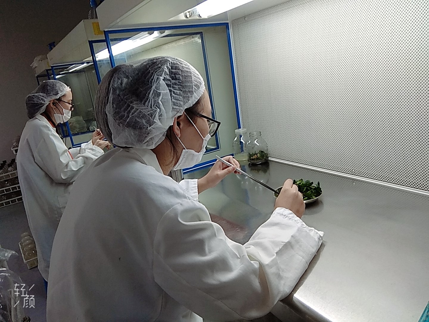 南陵大浦现代农业示范基地以科技为支撑,大力发展现代农业,是国家级农业科技园区,相继成立了安徽省首个现代农业科技企业孵化器、大浦现代农业研究院、博士后工作站、省级企业技术中心等科技机构。大浦重点发展种苗组培产业,建成有全国较大的脱毒种苗基地。赴南陵大浦现代农业示范基地实习的学生在大浦的接种室学习组培技术,分离植物株茎,切去苗的叶片和根,得到蝴蝶兰幼苗。