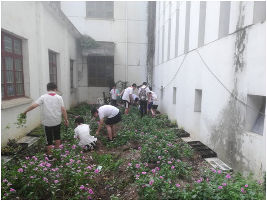 涂老师结合新时代国家创新创业大好形势,面向全体“红领巾”和家长,对莘莘园艺创客实验室大门外的移动花园、大门上“大众创业,万众创新”的主题标语及大门内大学生创新创业成果展和花卉墙进行了细致的讲解。讲解结束后,涂老师带领“红领巾”们为莘莘园艺创客实验室内地栽的长春花进行了除草、施肥和浇水。