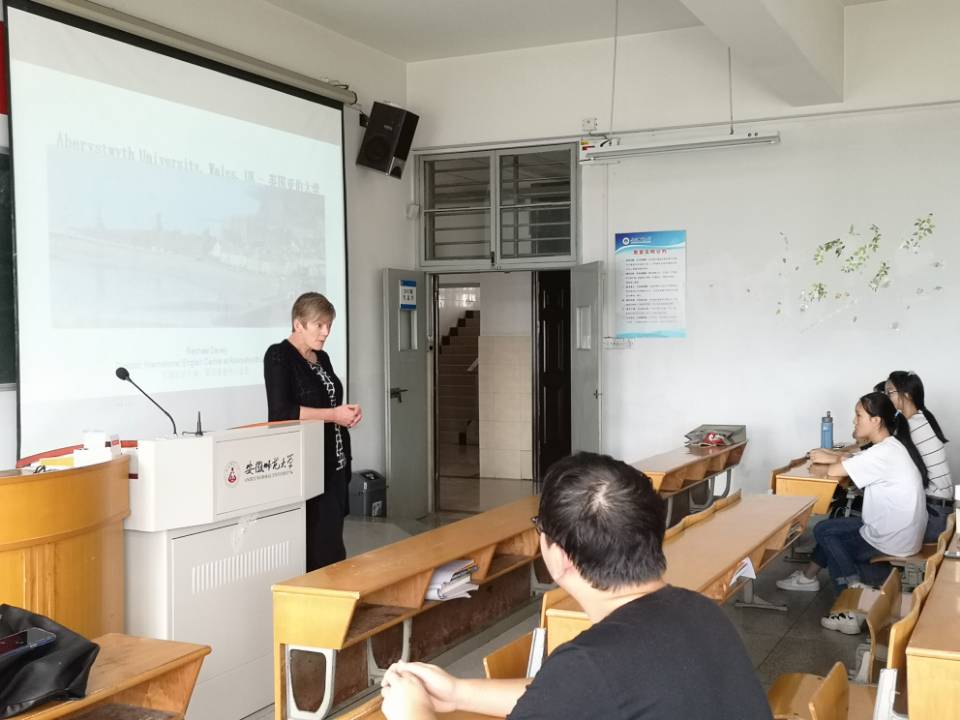 16日,Rachael女士一行来到田楼501教室,与2018级生物科学专业中英班的学生进行了交流。