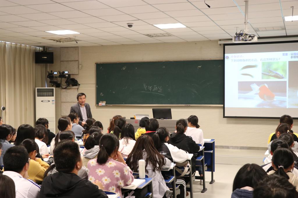 本节课的主题是“扁形动物门”,是首次出现中胚层的动物门类。潘教授通过线上教学手段,巧设问题,以新颖的手段引导全体学生回顾“刺胞动物门的主要特征”。紧接着,潘教授从动物进化历程入手,自然过渡到新课“扁形动物门”的教学内容。他紧扣进化主线,采用对比法教学方法,以两胚层结构的“刺胞动物门”为参照,完整清晰地讲述了扁形动物门的主要特征,突出“两侧对称体制”和“中胚层出现”在动物进化上的重要生物学意义。课堂教学中,潘教授既结合自身的科研展现了相关的研究成果,又将“刺胞动物”和“扁形动物”干细胞研究的最新科研成果引用到教学中,极大地提高了学生的学习兴趣。