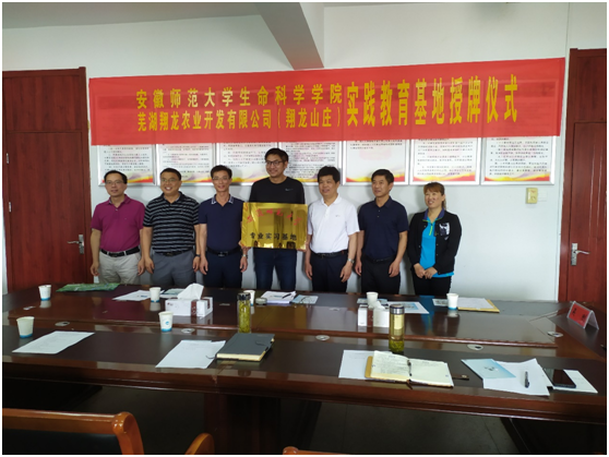 本网讯(生科院 何锋,张晓平)2020年6月7日上午,bwin必赢线路检测社会合作处副处长史铁杰、生科院党委书记蒋学波、园艺专业负责人张晓平以及专业教师肖家欣教授、何锋副教授一行5人,前往芜湖县红杨镇翔龙农业开发有限公司进行了专业实习基地洽谈、实习协议签署和实践教学基地挂牌等活动。红杨镇党委书记吴刚、镇人大副主席孙成斌、翔龙山庄总经理刘梅水等出席洽谈会与签约仪式。