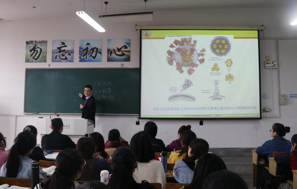 在章节学习“细菌和病毒在遗传学研究中的地位”中,卜老师首先介绍了细菌的繁殖快、易突变的特点,以四种典型的肠道细菌为例尤其是结合模式生物大肠杆菌的特点,卜老师提醒大家多吃蔬菜、水果等肠道细菌喜爱的食物,揭示了均衡饮食与人类健康的关系。紧着了,卜老师重点介绍了由鼠疫耶尔森氏菌引起的鼠疫(黑死病),鼠疫曾经横扫欧洲大陆,我国东北也曾于1910-1911年爆发了鼠疫。其中,卜老师着重介绍了中国检疫、防疫事业的先驱伍连德博士的生平和事迹。卜老师总结出向伍连德博士学习的两点经验:一、实事求是,科学防疫。在实地考察的基础上,根据事实做出科学的判断,不被权威所影响;二、要有爱国之心和爱国之情,虽然伍连德是马来西亚籍华人,但他心系祖国,为我国的防疫事业和医学发展做出了杰出的贡献。这两点也体现在了此次新冠病毒的防控工作中,正是由于钟南山院士等科学家实事求是,早期做出了病毒可以人传人的判断后,我国政府才果断采取封城、居家隔离等防控措施,最终疫情在我国得到了有效控制。之后,卜老师结合西班牙大流感和天花讲解了病毒的结构和特点。最后,卜老师以“一个问题:为什么流感病毒和新冠病毒不能像天花病毒一样被‘消灭’?为什么不能通过接种疫苗进行有效的预防”结束了此次课程,引发了同学们的思考。