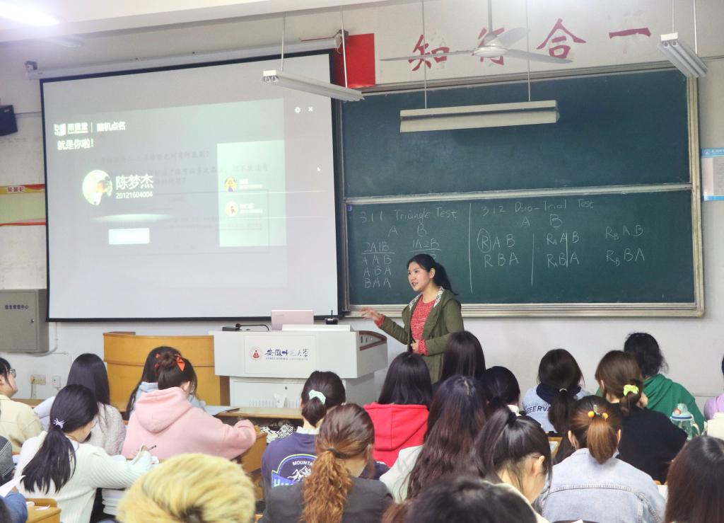 本网讯(生科院 汪昌保)4月22日上午,生科院严帆讲师在赭山校区田家炳8306教室开展了一堂精彩的院级本科教学观摩课,学院相关领导和部分中青年教师参加了此次公开课。《食品感官评价》是“食品质量与安全”与“食品科学与工程”两个专业共同的一门选修课(限选课),主要阐述食品检测与品质控制的基础理论,为培养学生的专业实践技能奠定基础。本次教学活动中,严帆老师成功尝试了“雨课堂”新型智慧教学工具。