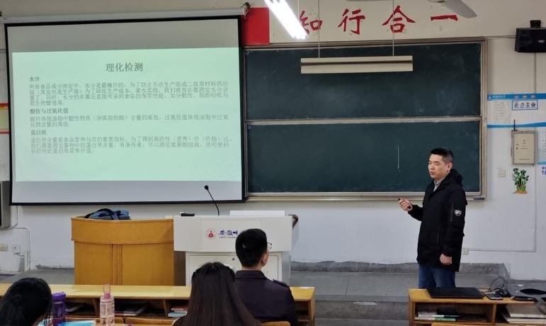 本网讯(生科院 孙柯)为提升专业素养,开阔学术视野,强化就业意识,提高就业能力,4月28日上午,76net必赢线路检测中心邀请安徽瑞谱检测技术有限公司技术总监李杰和公司综合管理部经理陈靖,在赭山校区田楼8306教室做“食品检测技术”与“食品专业就业指导”方面的报告。食品专业学生聆听了讲座,孙柯老师主持讲座。