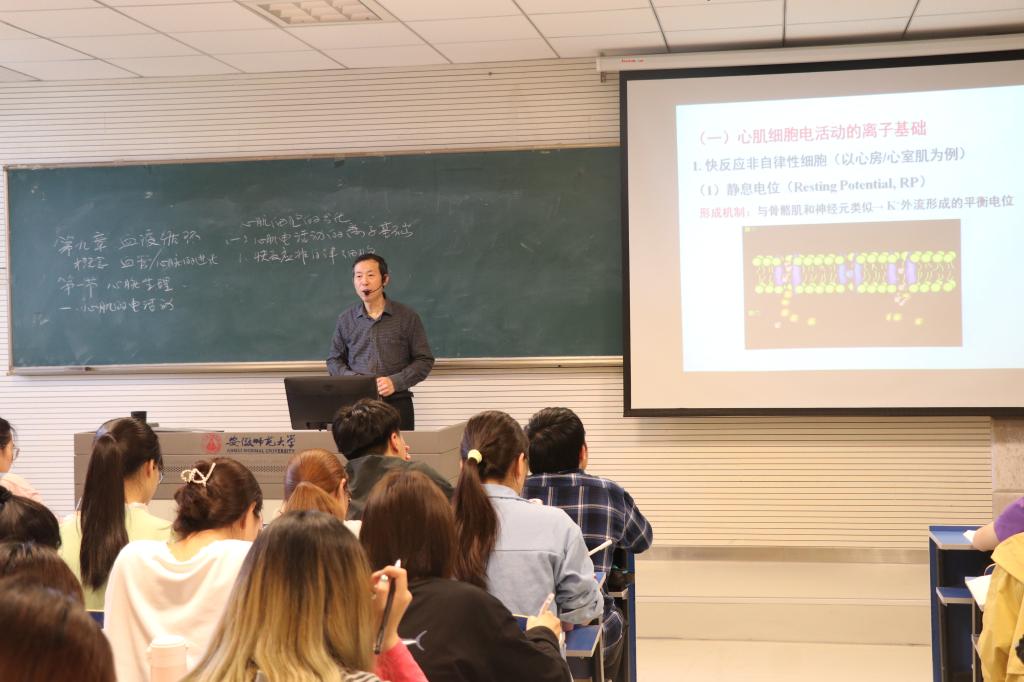 本网讯(生科院 聂海涛)5月17日上午,生命科学学院华田苗教授在赭山校区田楼8607教室精彩演绎了一场《动物生理学》校级本科教学示范观摩课。学校督导团、学院督导组、学院领导和部分教师参加了此次公开课。