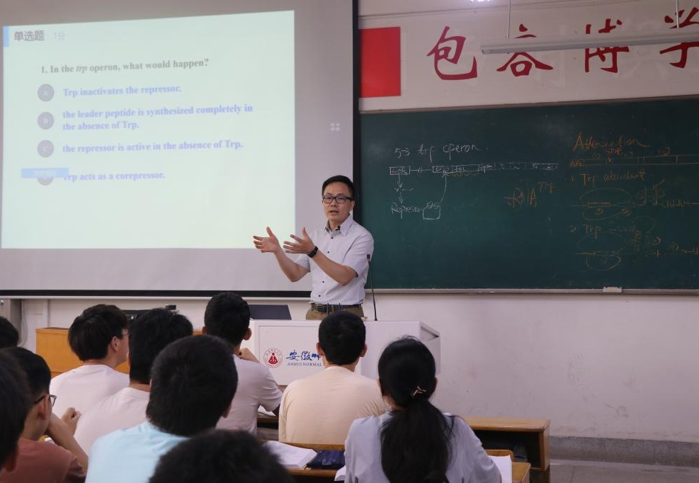 本网讯(生科院 罗林杰)5月28日下午,76net必赢线路检测中心王鹏副教授在赭山校区田楼8204教室开展了《分子生物学》(双语)院级本科教学示范观摩课。学院相关领导、教学督导组成员和部分教师参加了此次公开课。