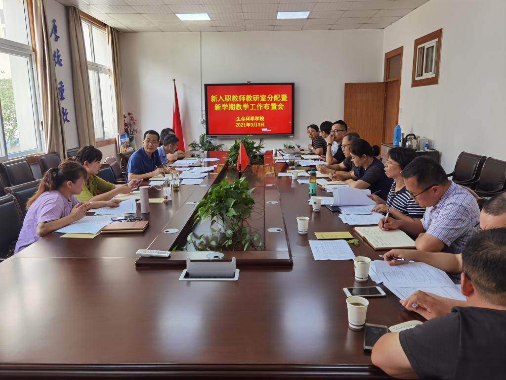 本网讯(生科院 苗素丽)9月3日下午,生科院在赭山校区生化楼第一会议室召开新入职教师教研室分配会暨新学期本科教学工作推进会。学院教研室主任、专业负责人及助理参会。会议由教学副院长陈冬生主持。
