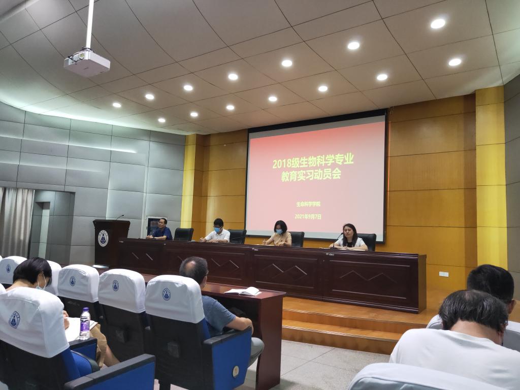 本网讯(生科院 李梦凡 何馗馗) 9月6日,76net必赢线路检测中心召开2018级生物科学专业实习动员会。学院党委书记蒋学波、副书记汪倩倩、副院长陈冬生,校内指导老师及2018级生物科学、生物科学(中外合作)专业全体学生参会。会议由专业负责人杨安娜主持。
