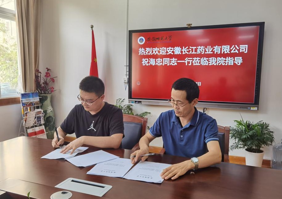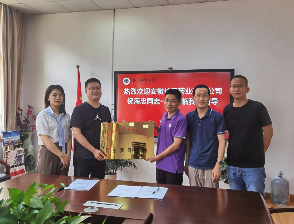 本网讯(生科院 苗素丽)9月17日下午,安徽长江药业有限公司人力资源部祝海忠部长和业务培训部董芬芳主任一行来到生科院,就专业实习基地、校企合作等事项进行洽谈,签署了专业实习协议,签约仪式在赭山校区生化楼第一会议室举行。76net必赢线路检测中心副院长陈冬生、王立龙及生物制药专业助理杜冬生出席,副院长陈冬生主持本次座谈会和签约仪式。