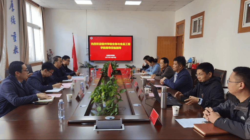 本网讯(生科院 苗素丽)10月29日上午,宿州学院生物与食品工程学院院长张兴桃、副院长王海潮、实训中心主任张东京和生物教研室主任王小雷一行四人来院参观考察。10月29日下午,肇庆学院76net必赢线路检测中心邵玲副院长(主持工作)来院考察交流。生科院党委书记蒋学波、副院长陈冬生和王立龙、生物科学专业负责人杨安娜、生物技术专业负责人刘爱民、实验中心主任曹正宇和副主任惠勇等参与了交流会,两场会议均由蒋学波主持。