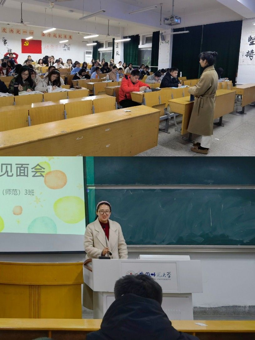 本网讯(生科院 戴琦)2022年3月1日晚七点,生物科学(师范)3班同学齐聚赭山校区田家炳楼8306教室,聆听老师谆谆教诲,共筑美好未来。本次见面会由辅导员老师周文娟主持,班主任老师杨璐、涂传林副教授、李冰欣副教授作为导师代表为同学们做了精彩讲座。