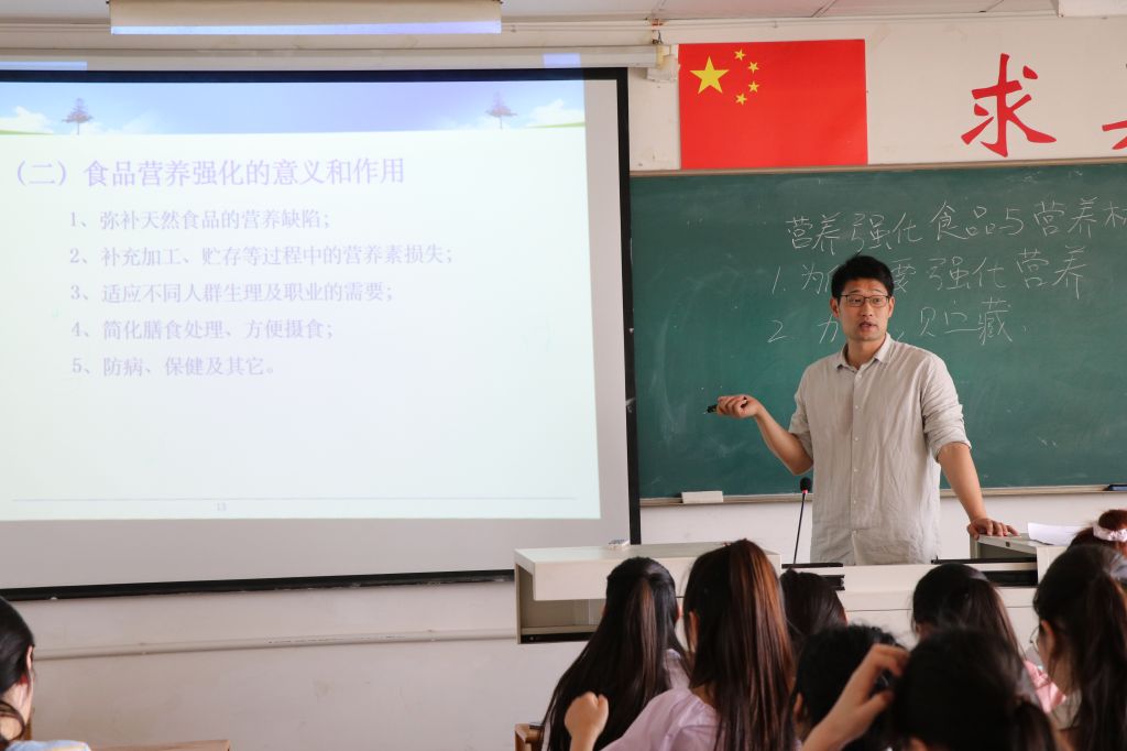 本节课的主题是“食品的营养强化”。罗辑首先回顾了上一章节中食品营养缺乏和过剩打破营养平衡引发疾病等相关知识,自然过渡到课程新知。接下来以“为何要补充营养强化剂”为设问,吸引学生思考,重点解析了食品营养强化的内涵,从食物本身的营养缺陷和加工过程营养素的损失等多角度阐述了食品营养强化的意义和作用,介绍了食品营养强化剂和强化食品的种类。最后,罗老师从营养、卫生及经济效果的角度全面分析了食品强化的基本要求。罗老师通过图文并茂的方式加深学生对食品营养强化重要性的认识,采用随机点名的方式与学生频繁互动,课堂气氛轻松。