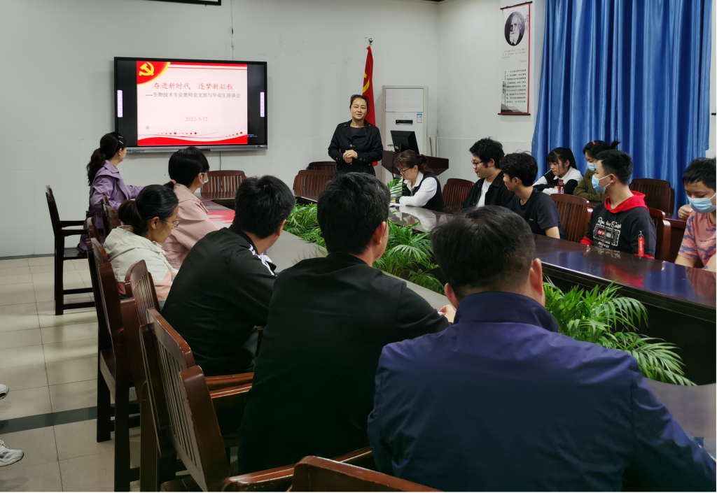 本网讯(生科院 王旭)2022年5月12日下午,为进一步做好毕业生就业工作,贯彻“六保”要求,落实“六稳”工作,降低疫情对毕业生就业造成的影响,在学院党委的高度重视下,生物技术专业将2022届毕业生中未就业的同学召集在一起,结合教工支部活动,召开就业推进座谈会。生物技术专业教师党支部成员、非党员教师、生物技术专业毕业班辅导员参加会议。专业负责人刘爱民老师主持座谈会。